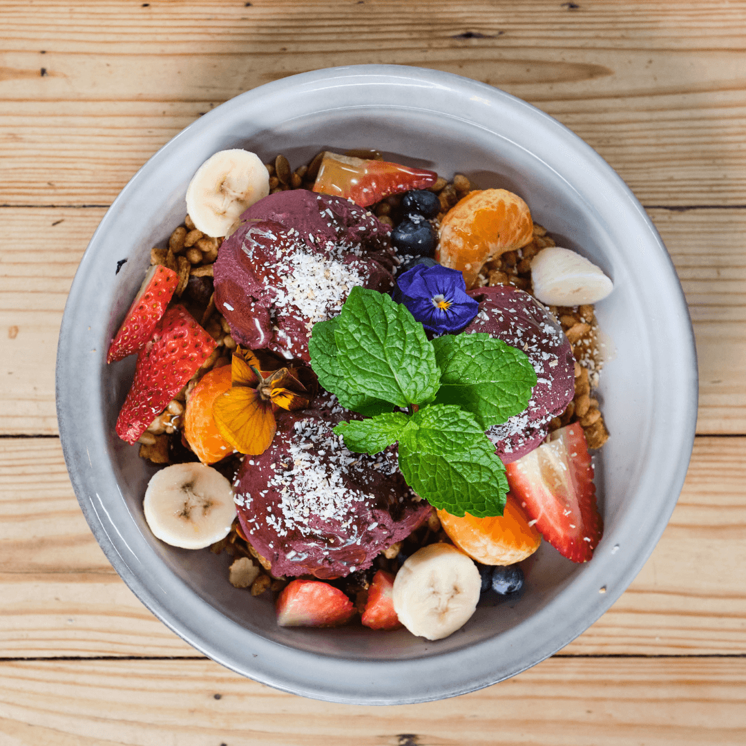 | Amazon açaí mix with crunchy granola, seasonal fruits, peanut butter or honey. | |